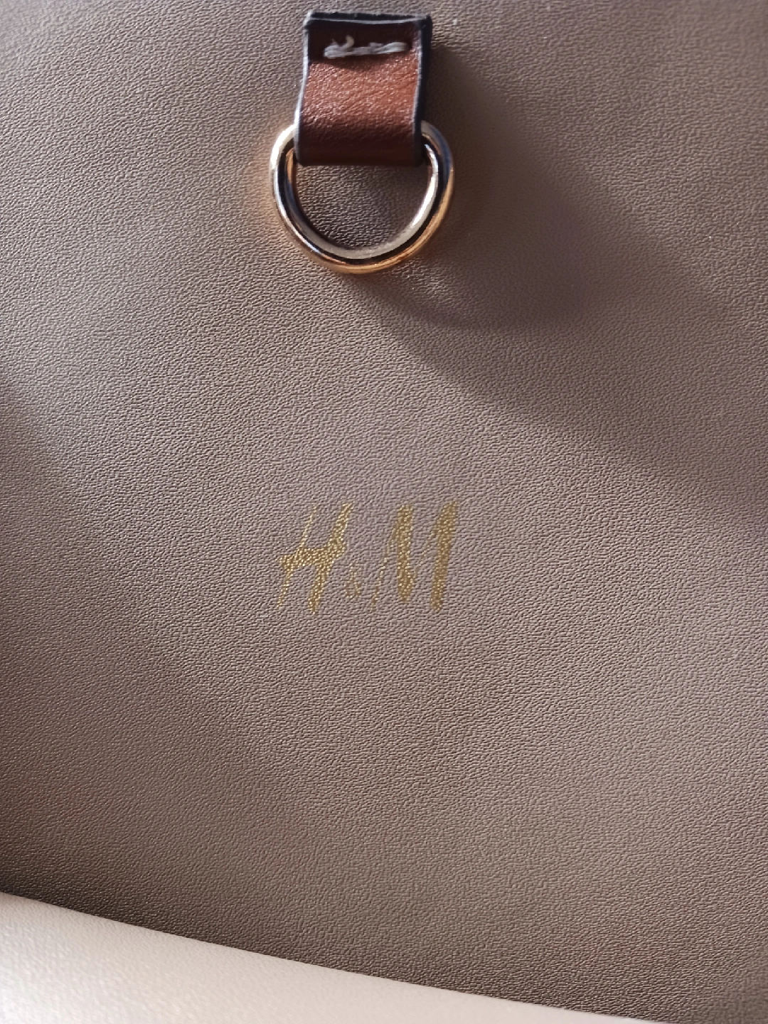 Selling a tan tote bag from H&M. It's in great condition and perfect for carrying your essentials. The bag features brown handles and a neutral pattern all over