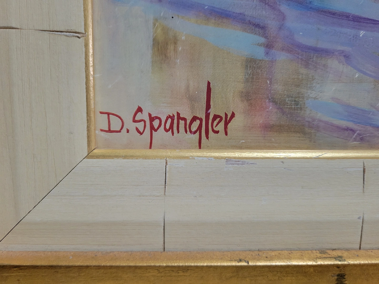 Lovely painting of Cafe de Flore by D. Spangler. The dimensions are 30.5" x 26". It's a beautiful piece that would look great in any home! Let me know if you are interested. Thanks.