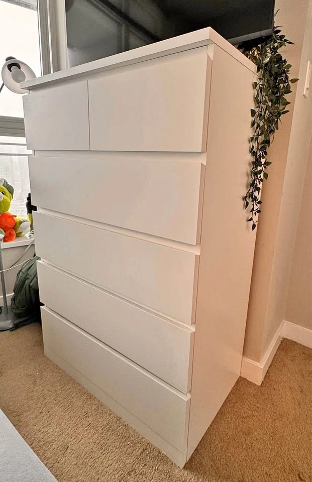 Sleek and modern 6-drawer dresser in white, perfect for any bedroom or living space. In excellent condition — no scratches or marks. All drawers slide smoothly and offer great storage space. Only selling because I am moving. Pickup only.