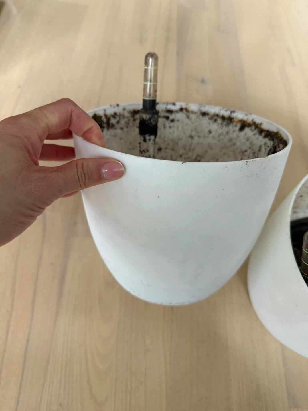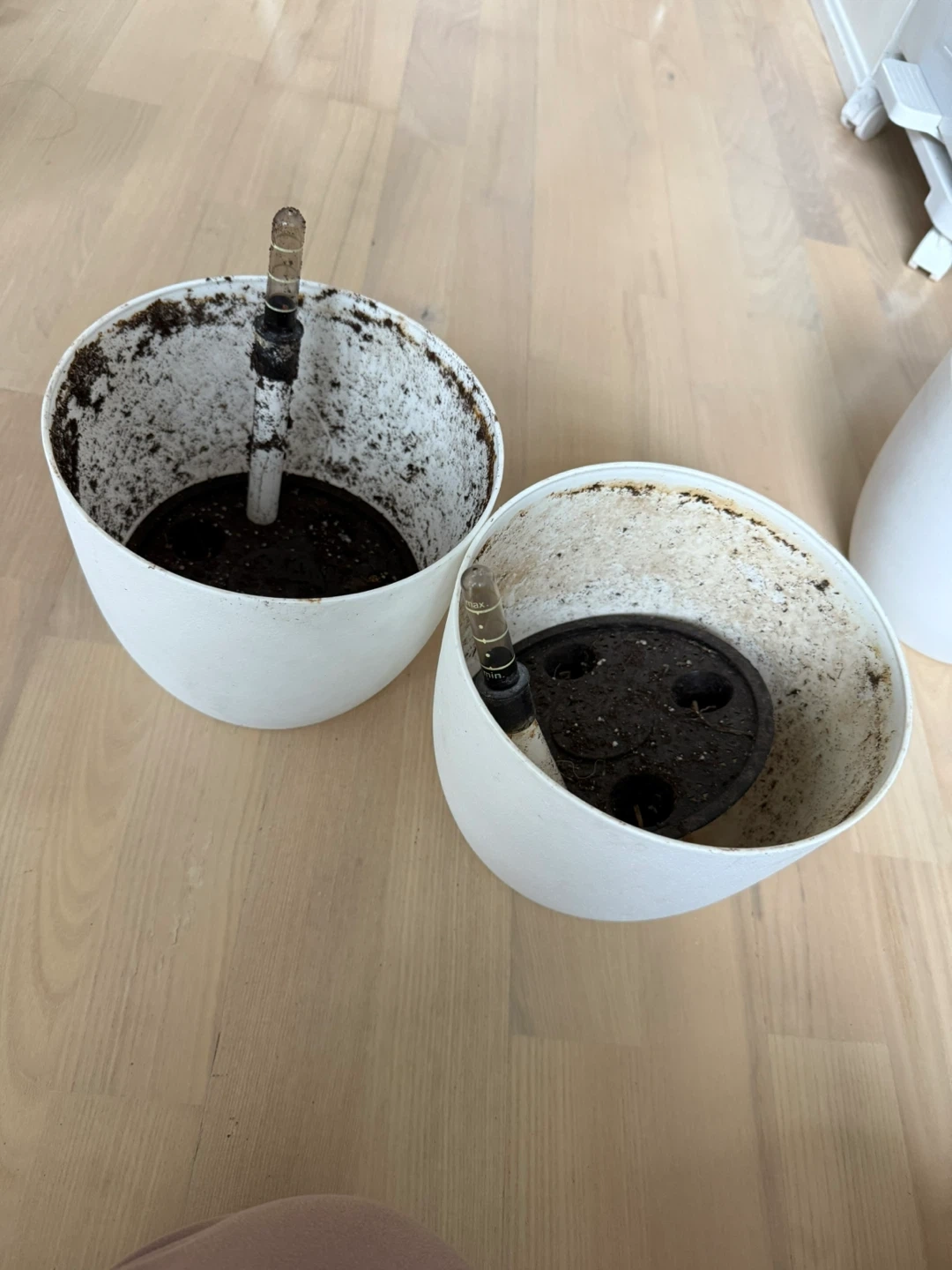 Selling a couple of self-watering planters. They're white and in good condition, perfect for indoor plants! They've been used, but are ready for a new home. These will clean up nicely, aside from the dirt inside they are in excellent condition on the outside.