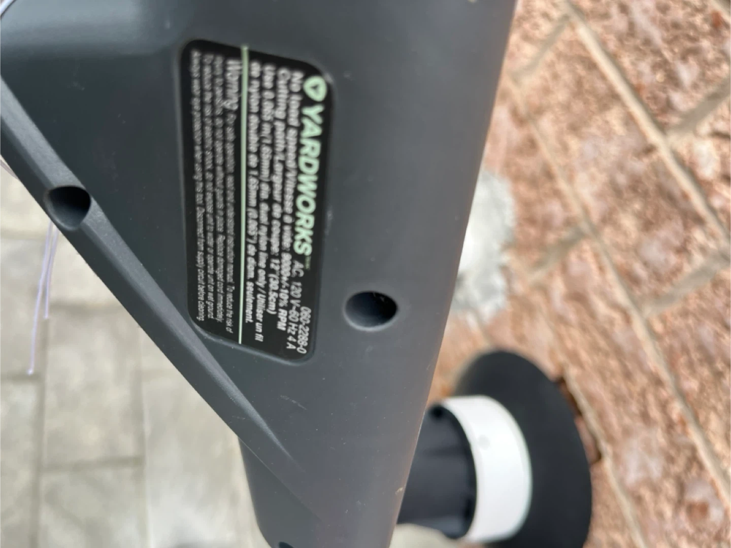 10Selling a Yardworks corded string trimmer. It's in good condition and ready to help you keep your yard looking great! It runs on AC 120 V - 60 Hz.