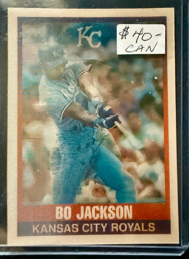 Own a piece of baseball history with this 1989 Sportflics Bo Jackson #70 card, showcasing him with the Kansas City Royals. This card is in excellent condition, making it a great addition to any sports memorabilia collection. This is a lenticular card, which makes it appear to move when viewed from different angles. If the ad is up, it's available!