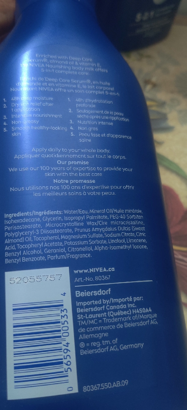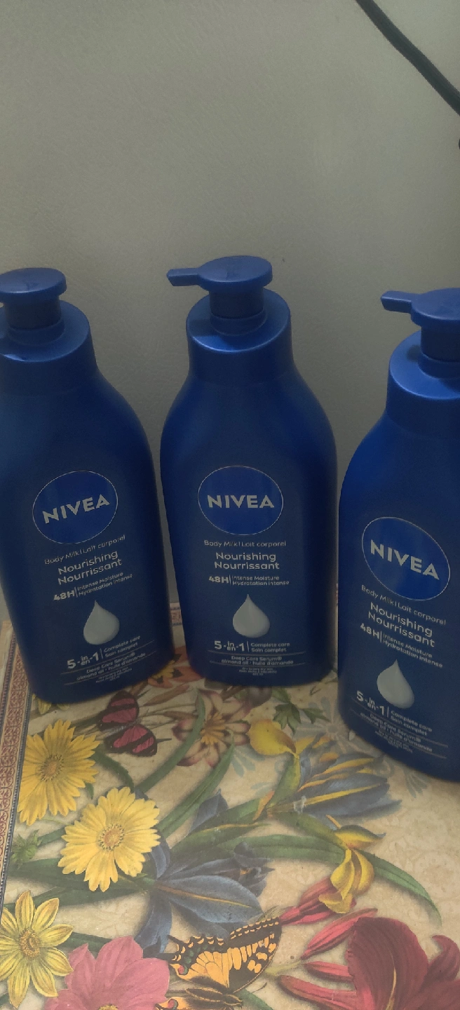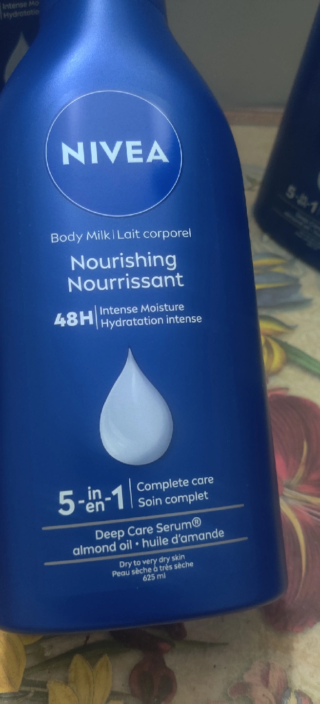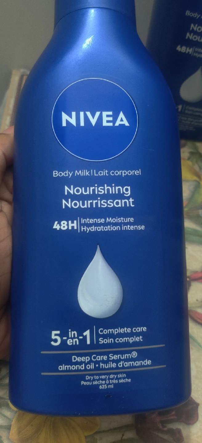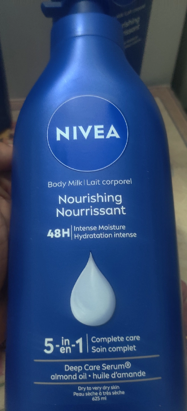 1000+Nivea Nourishing Body Milk for dry to very dry skin - 48H Intense Moisture - Enriched with Deep Care Serum and almond oil & vitamin E - 5-in-1 complete care - 625 ml