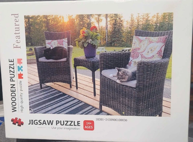 102Brand new and still in its original packaging, this wooden jigsaw puzzle is perfect for cozy afternoons! With a delightful scene featuring cats enjoying a serene outdoor setting, it's sure to provide hours of engaging fun. Specifications: * Type: Wooden Jigsaw Puzzle * Theme: Cats in an outdoor patio setting * Condition: New in box. If the ad's still up, the puzzle's still available! Pickup in Brampton near Sheridan College Davis campus