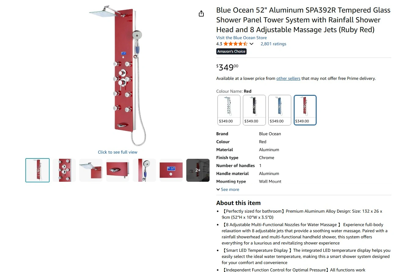 230Brand new Blue Ocean ruby red aluminum and tempered glass shower panel tower for sale. Rainfall shower head, 8 adjustable massage jets, showerhead, panel with rainfall, waterfall, tub spout, massage jets shower column, hand wand, column with mixer valve, LED temperature display, has small dent in pipe. $100 FIRM. Shower, Bathroom, Bath, Tub, Reno, Bathtub, Water, Tower, Massage, Rainfall, Waterfall, Jets, LED, Lights, Column, Valve, Wand, Spray, Renovation, Temperature, Pressure, Balanced, kit, system, trim