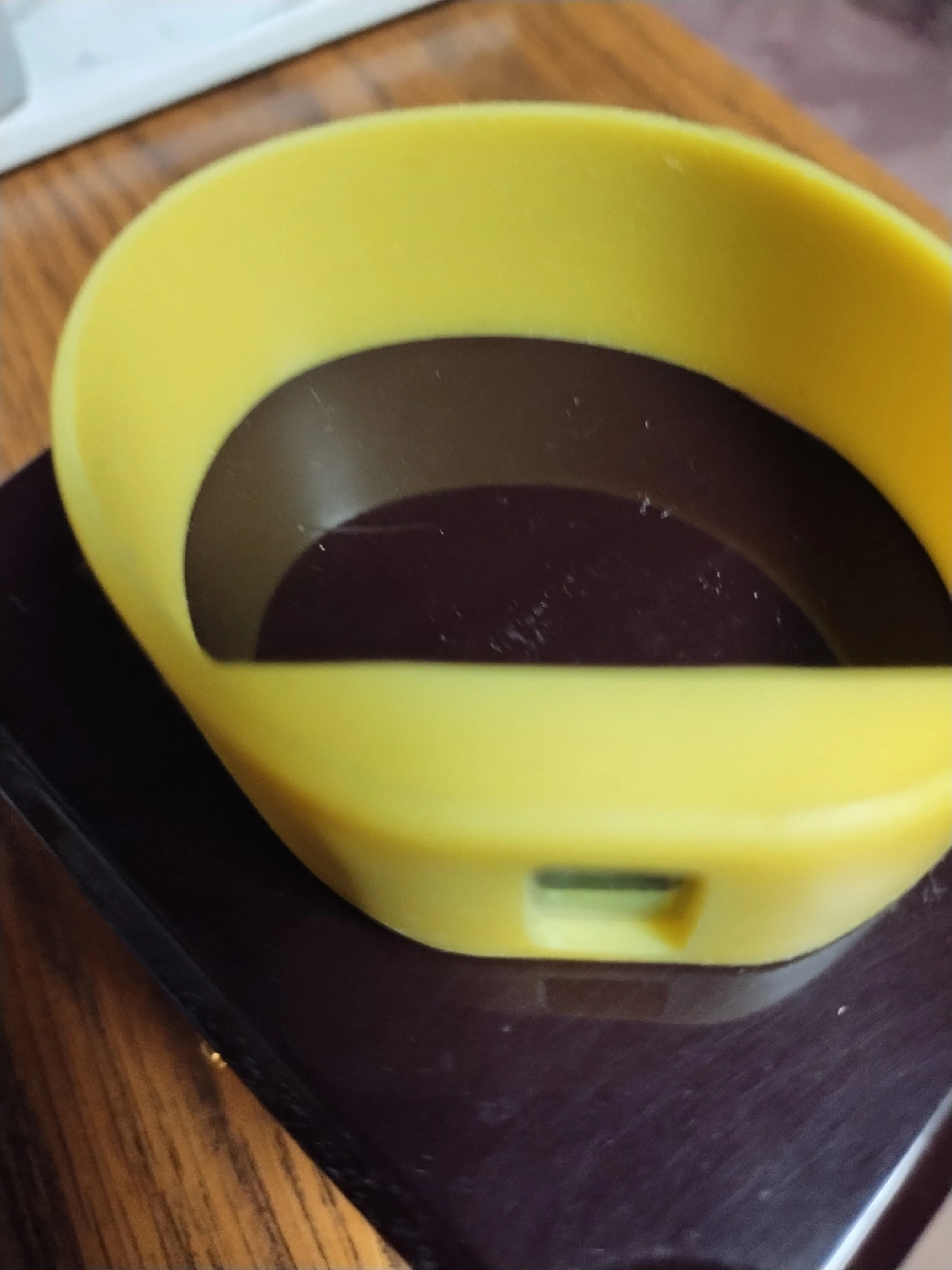 636yellow fitness tracker/watch wristband. It's in good condition and ready for a new home! I don't know how to adjust may be needs battery?