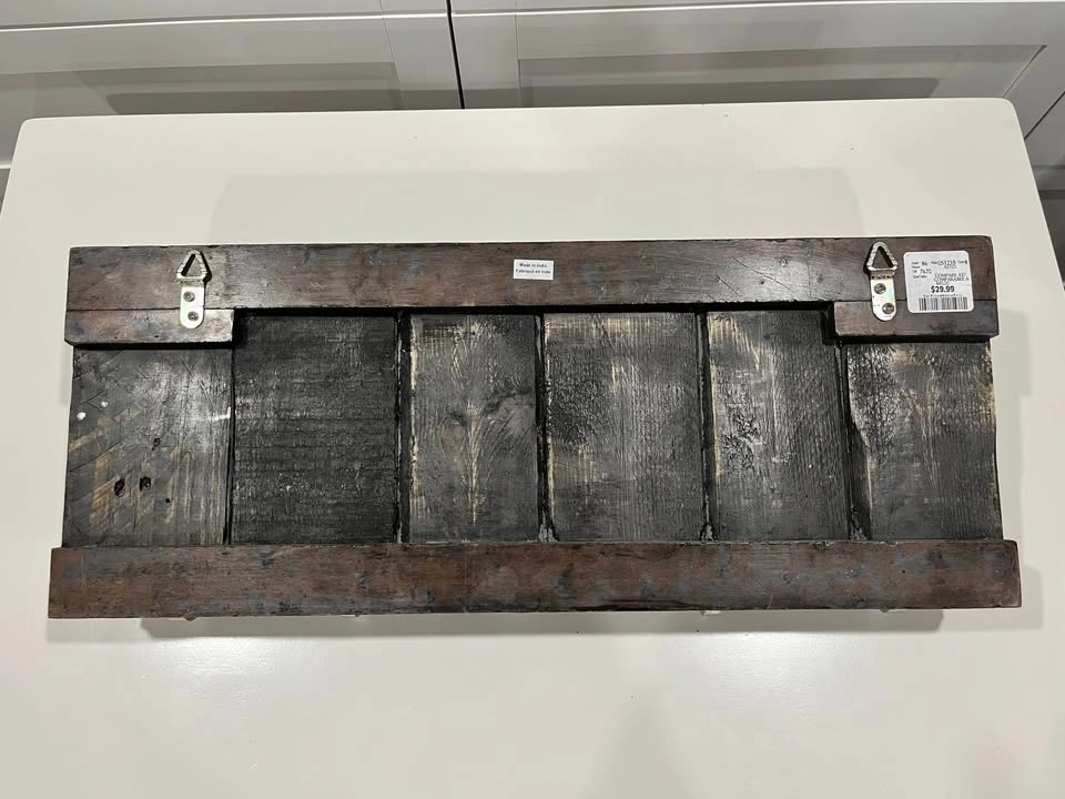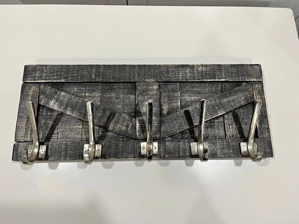 Selling brand new wooden barn door style wall hooks. Solid wood and hooks, great quality. Purchased from HomeSense and never used. Dimensions: 22.5" x 9"