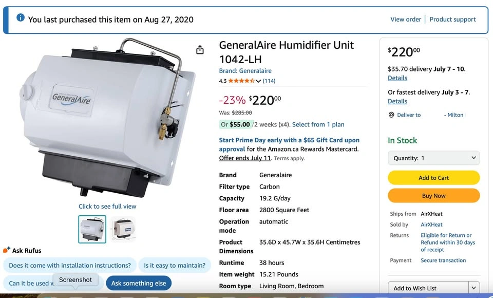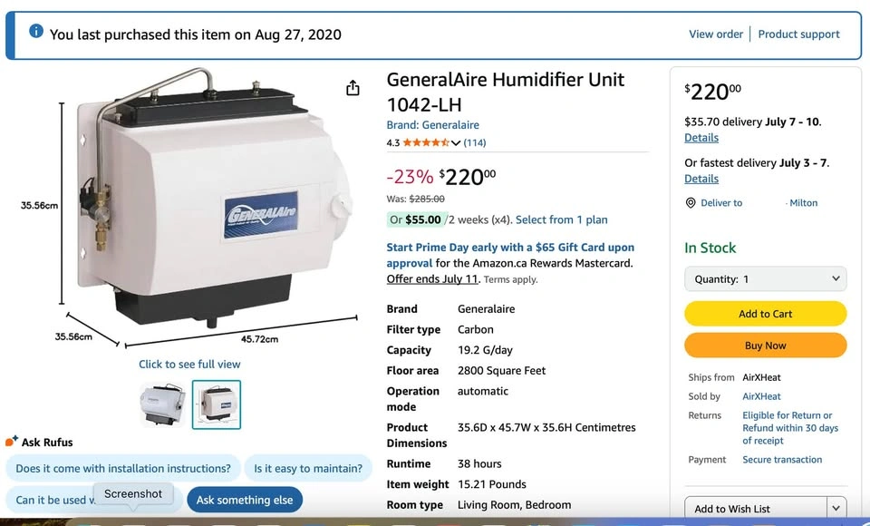 Selling a Brand New GeneralAire Humidifier Unit 1042-LH. Purchased on Amazon for $220 and by the time the installer came and told us it couldn't fit we could not return it. Currently still selling on Amazon.
