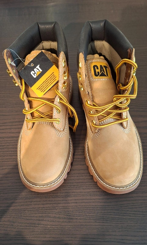 Selling a pair of brand new Caterpillar (CAT) boots! These are a classic and durable choice for work or everyday wear. They feature a sturdy sole for great traction and a comfortable fit. The iconic CAT logo is visible on the side. Get yourself a reliable pair of boots!