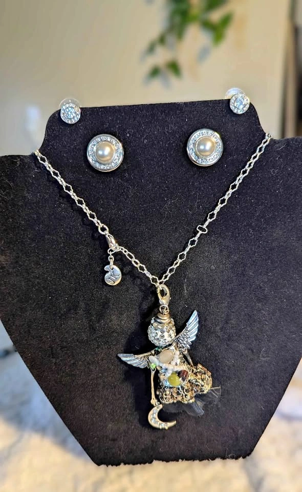 👼JK Angel Pendant Necklace + Pearl & Rhinestone Earrings Set