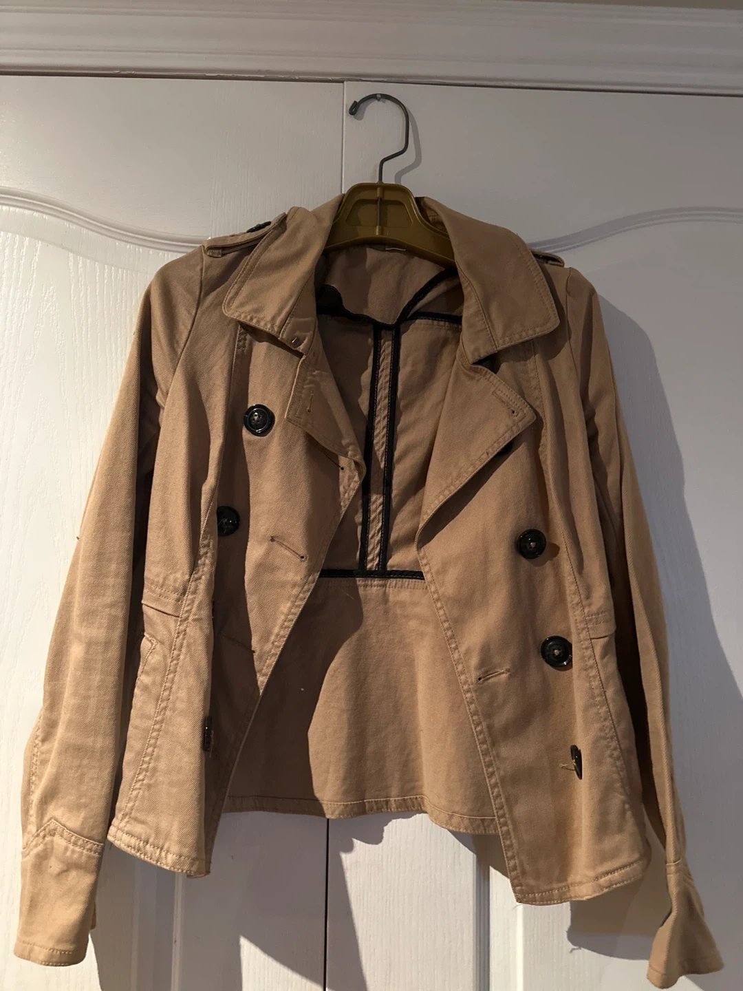 Selling a tan trench coat! It's in great condition and ready for a new home. This stylish coat is perfect for layering and adding a touch of sophistication to any outfit
