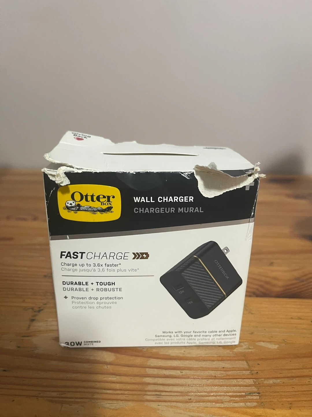 Selling an OtterBox 30W wall charger! It features fast charge technology, charging up to 3.6x faster. It's durable and tough, with proven drop protection. Works with your favorite cable and Apple, Samsung, LG, Google devices. Comes with the original box