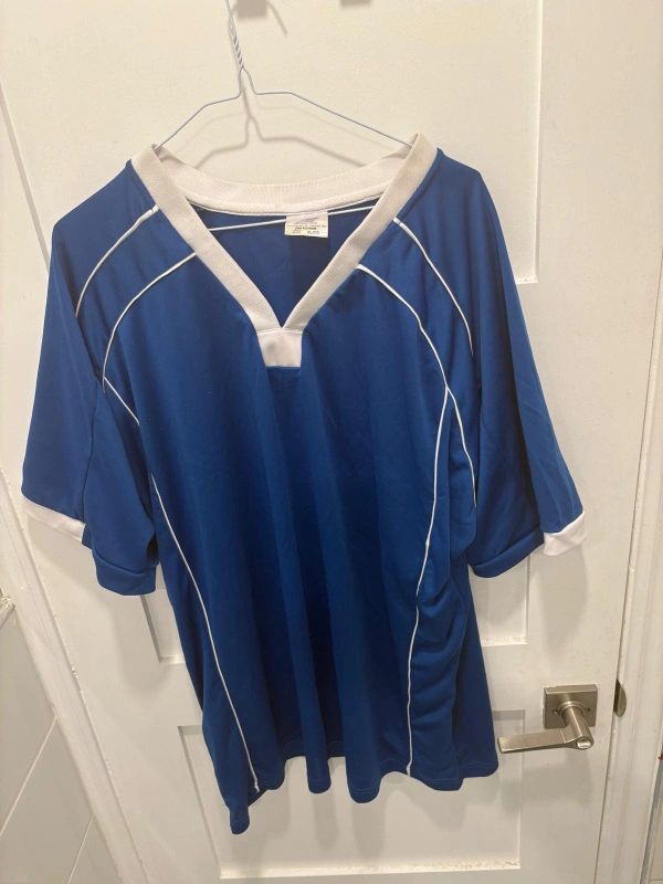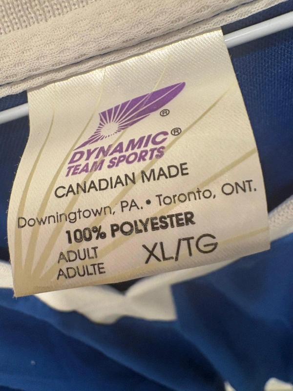631Selling a Dynamic Team Sports jersey in size XL/TG. It's a blue, Canadian-made jersey, made from 100% polyester. Perfect for sports or casual wear!