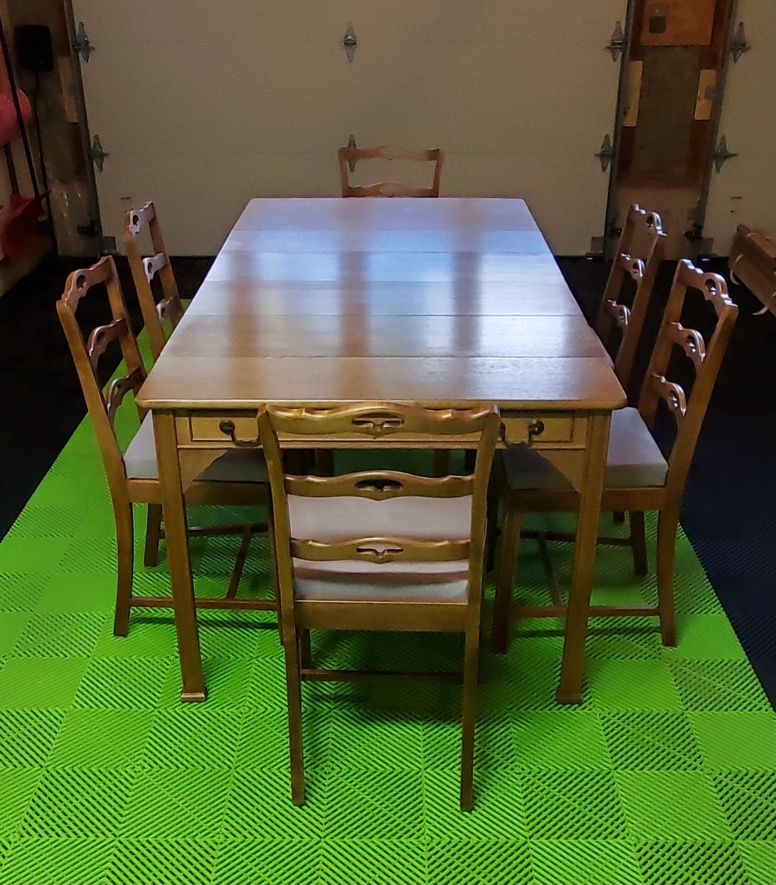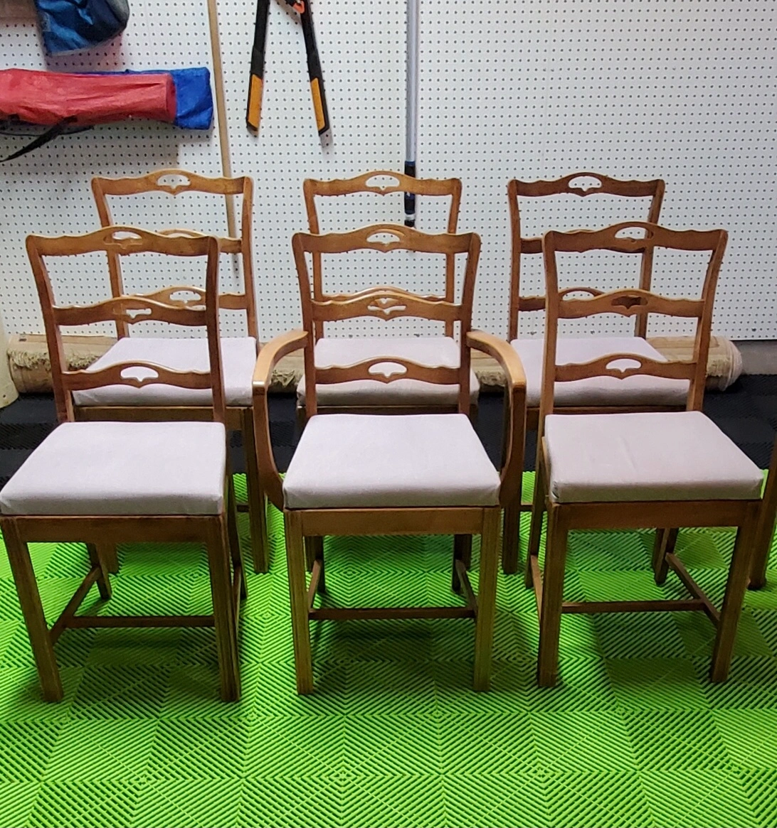 Selling a lovely dining table set from Knechtels Limited! The set includes the table and six matching chairs. The table has a walnut finish and a classic design. It's perfect for family dinners or entertaining guests!