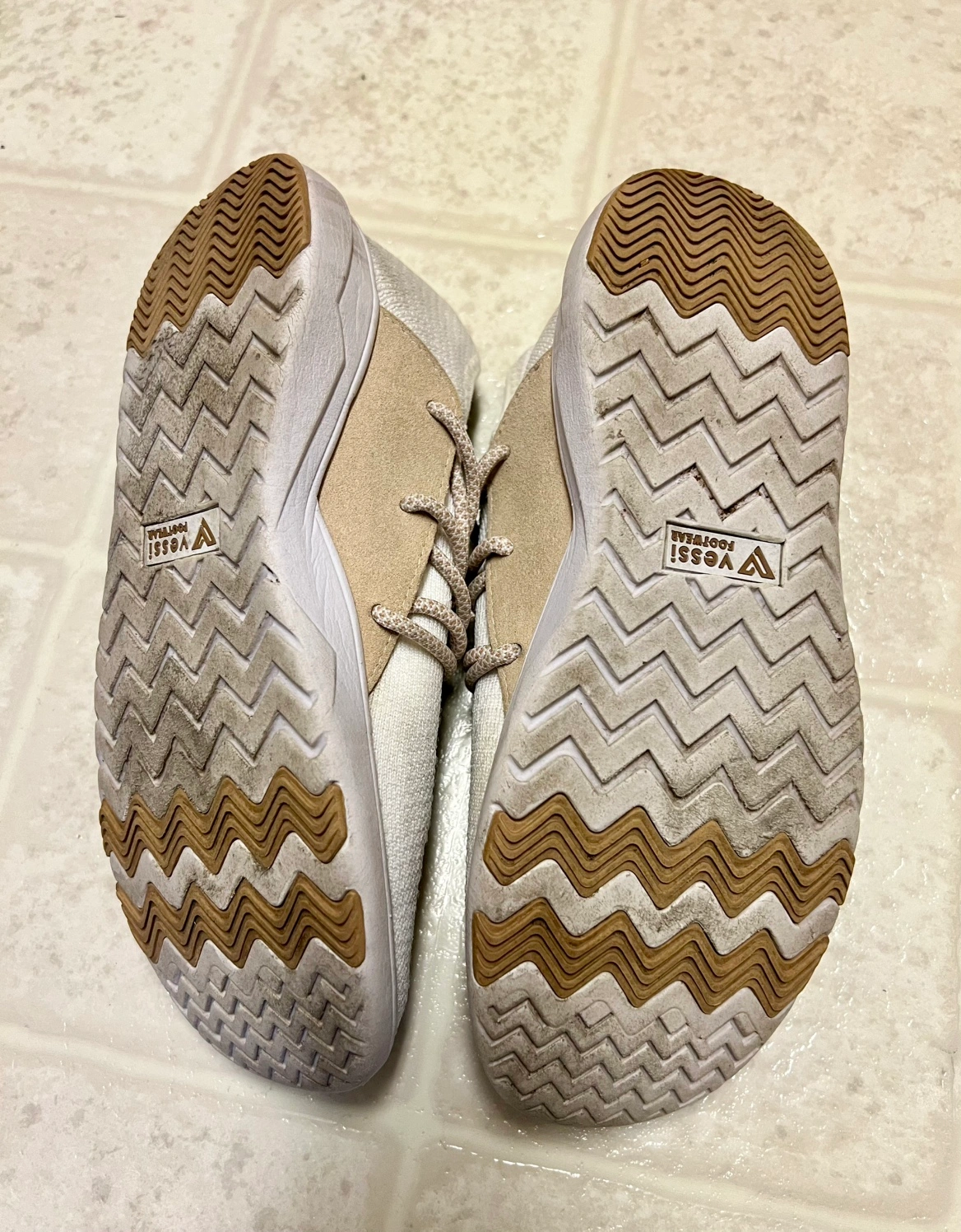 Vessi Cityscape Classic White Tan Knit Lace Up Shoes