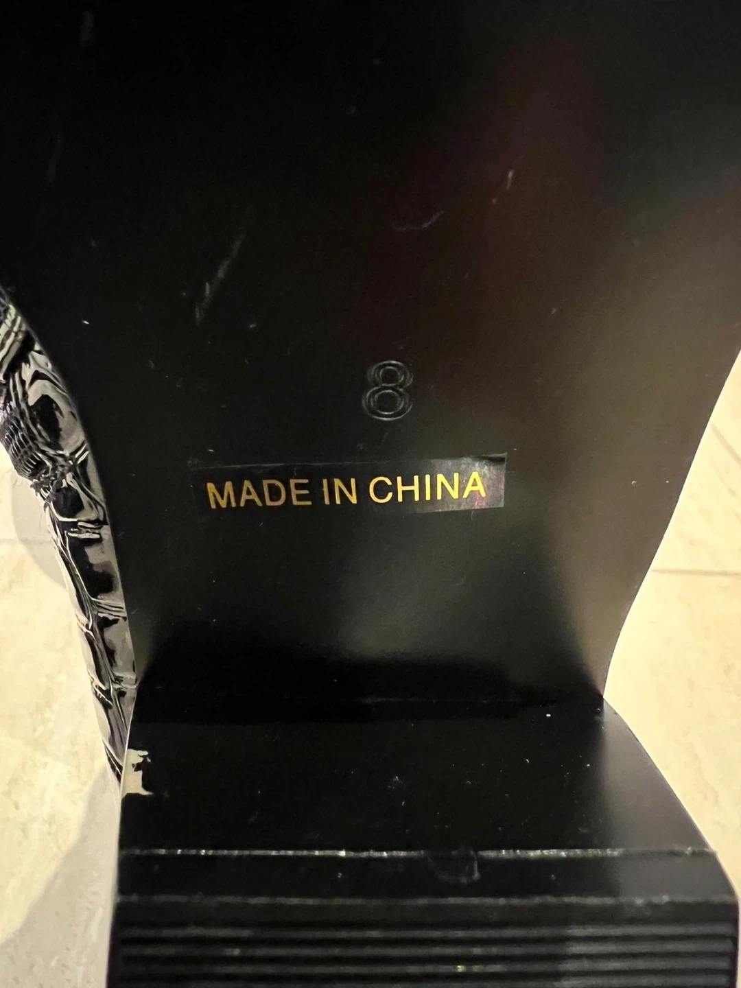 Selling a pair of stylish black boots with a unique crocodile embossed pattern! They are a size 8 and feature a convenient zipper closure. These boots are in great condition and ready for a new home