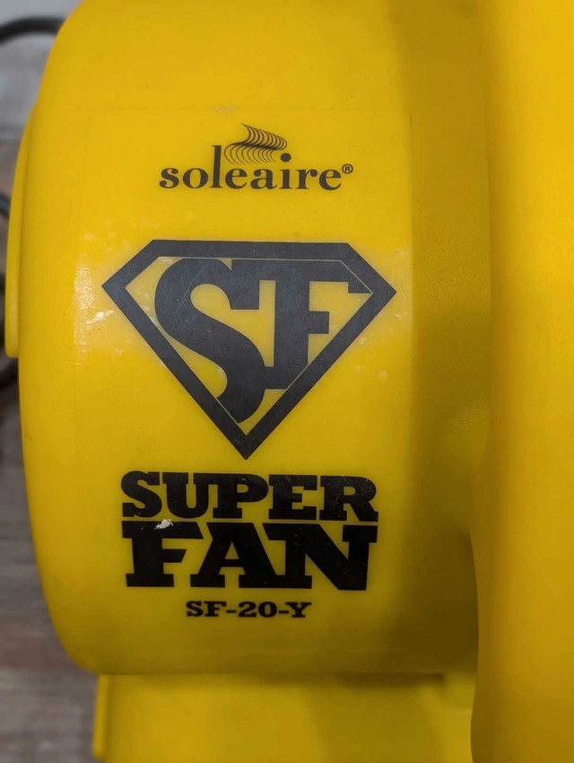 Soleaire SF-20 super fan – a high velocity, multi-purpose air mover perfect for drying, cooling, and ventilating large spaces. 3 powerful speeds for rapid air movement Daisy chain feature to connect multiple units for bigger jobs Durable, impact-resistant construction for tough environments Lightweight design with ergonomic handle for easy portability Used but in excellent condition Don't want to buy it? Rent it! $10/day with a $50 deposit.