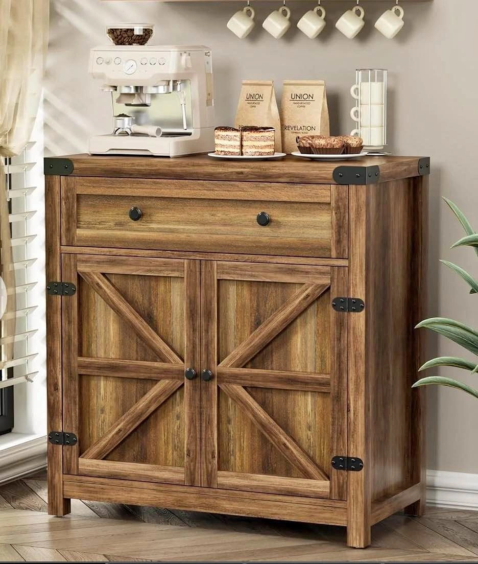 Modern Farmhouse Sideboard – Coffee Finish + Drawer (NEW)