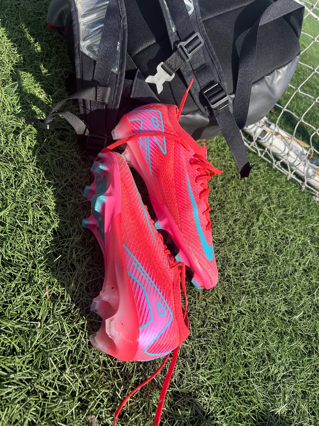 15Get ready to score with these vibrant Nike Mercurial Vapor 15 FG soccer cleats! The bright pink and blue design will make you stand out on the field. Perfect for firm ground play, these cleats offer excellent traction and support. Lace up and get ready to play your best!