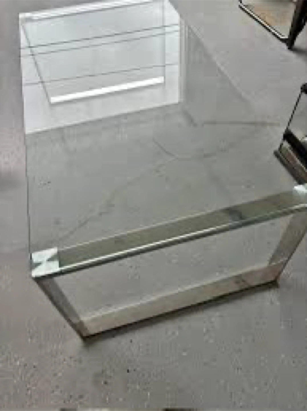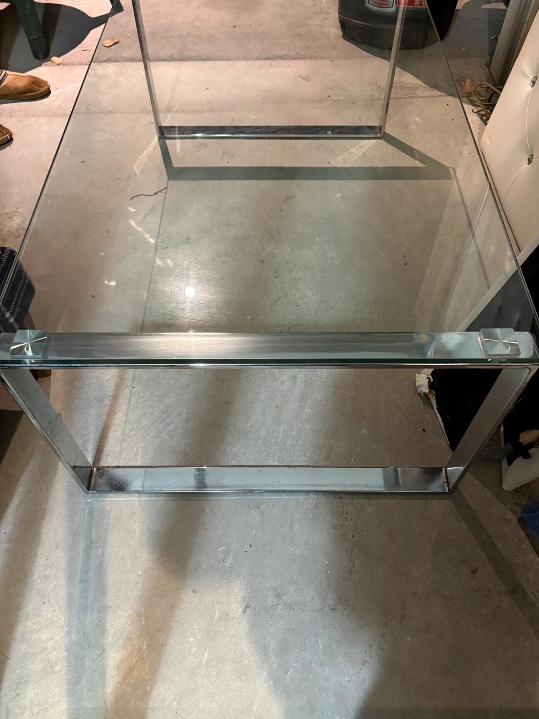 Selling a glass coffee table with a sturdy metal frame. It's in great condition and would be a stylish addition to any living room. Perfect for holding your coffee, books, or decor!