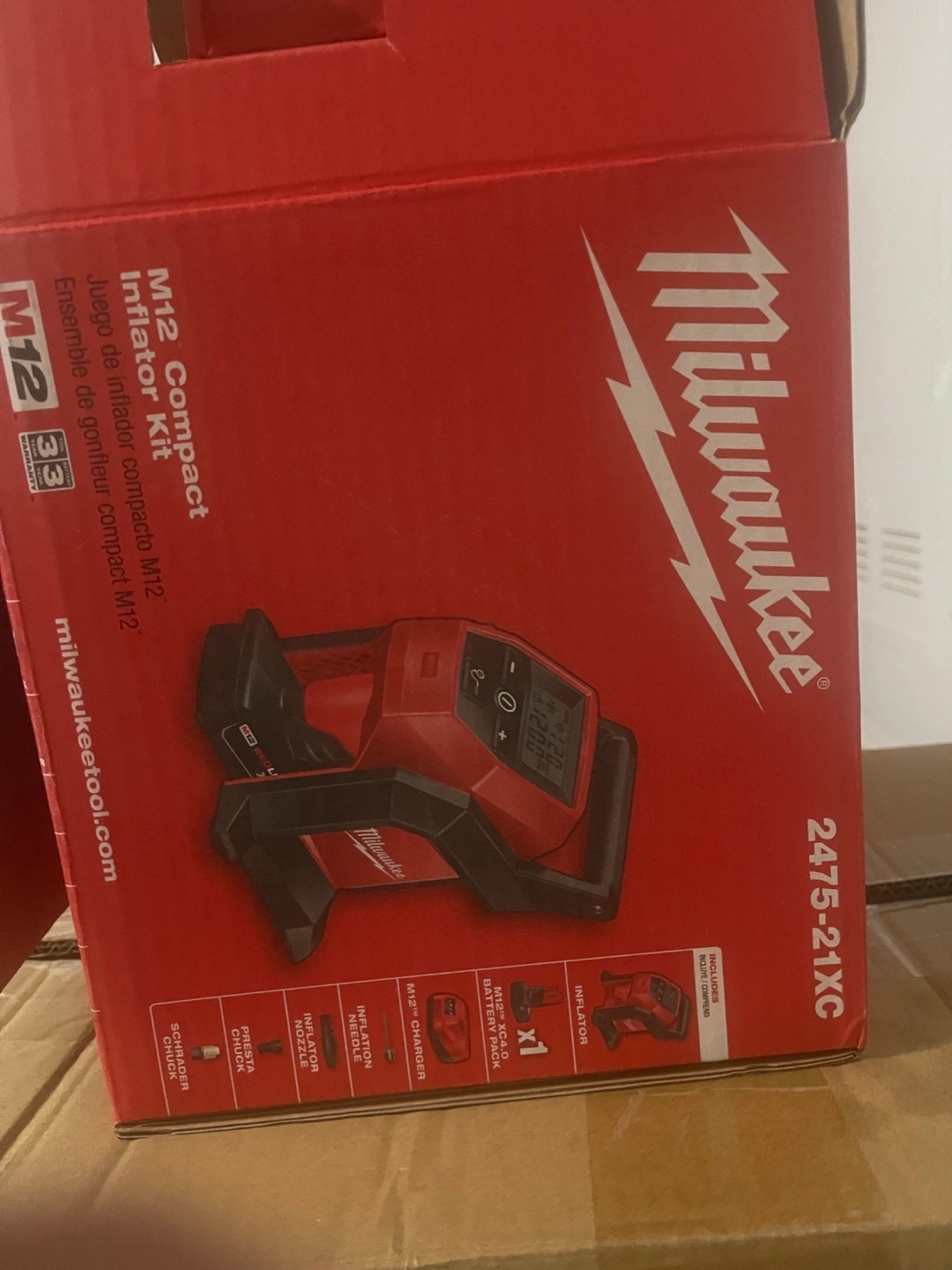 86Selling a barely used Milwaukee M12 Compact Inflator Kit, still in the box! This kit includes the inflator, M12 charger, inflation needle, inflation nozzle, presta chuck, and schrader chuck. Perfect for keeping your tires properly inflated!