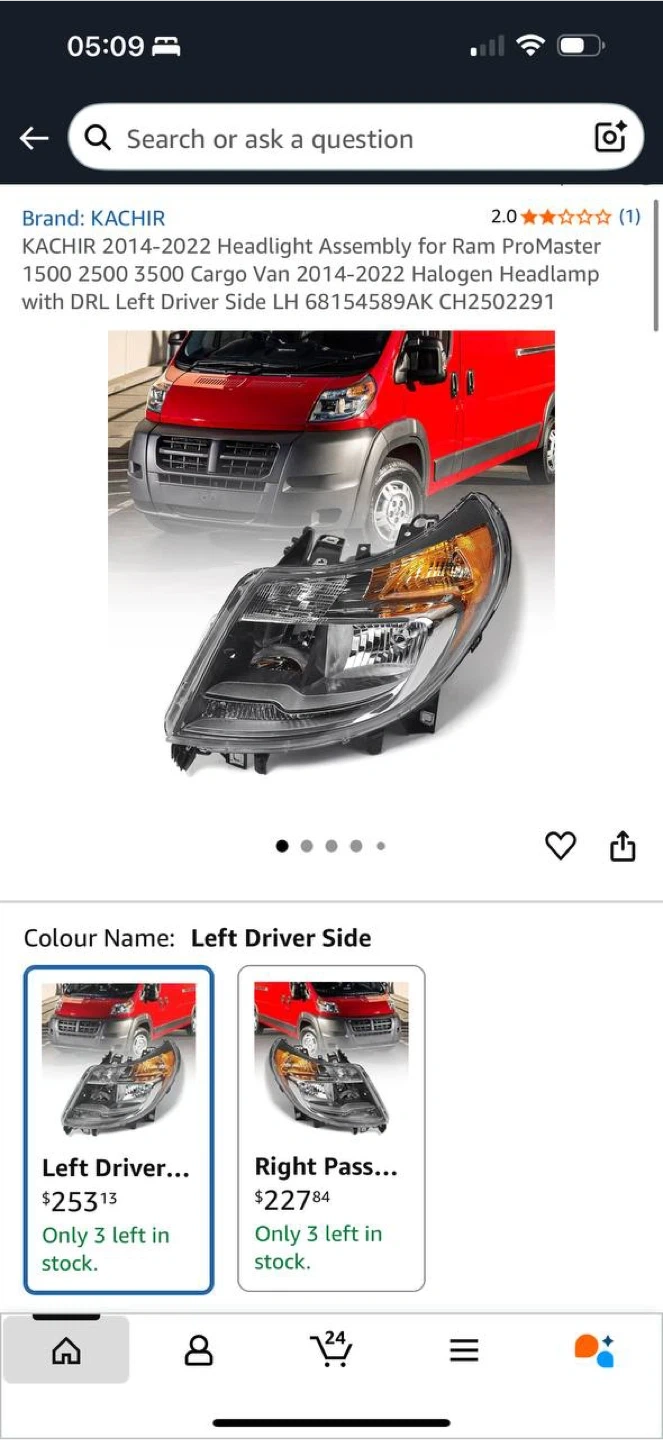 π‘ KACHIR Headlight Assembly for Ram ProMaster 2014β2022 (Left Driver Side) π