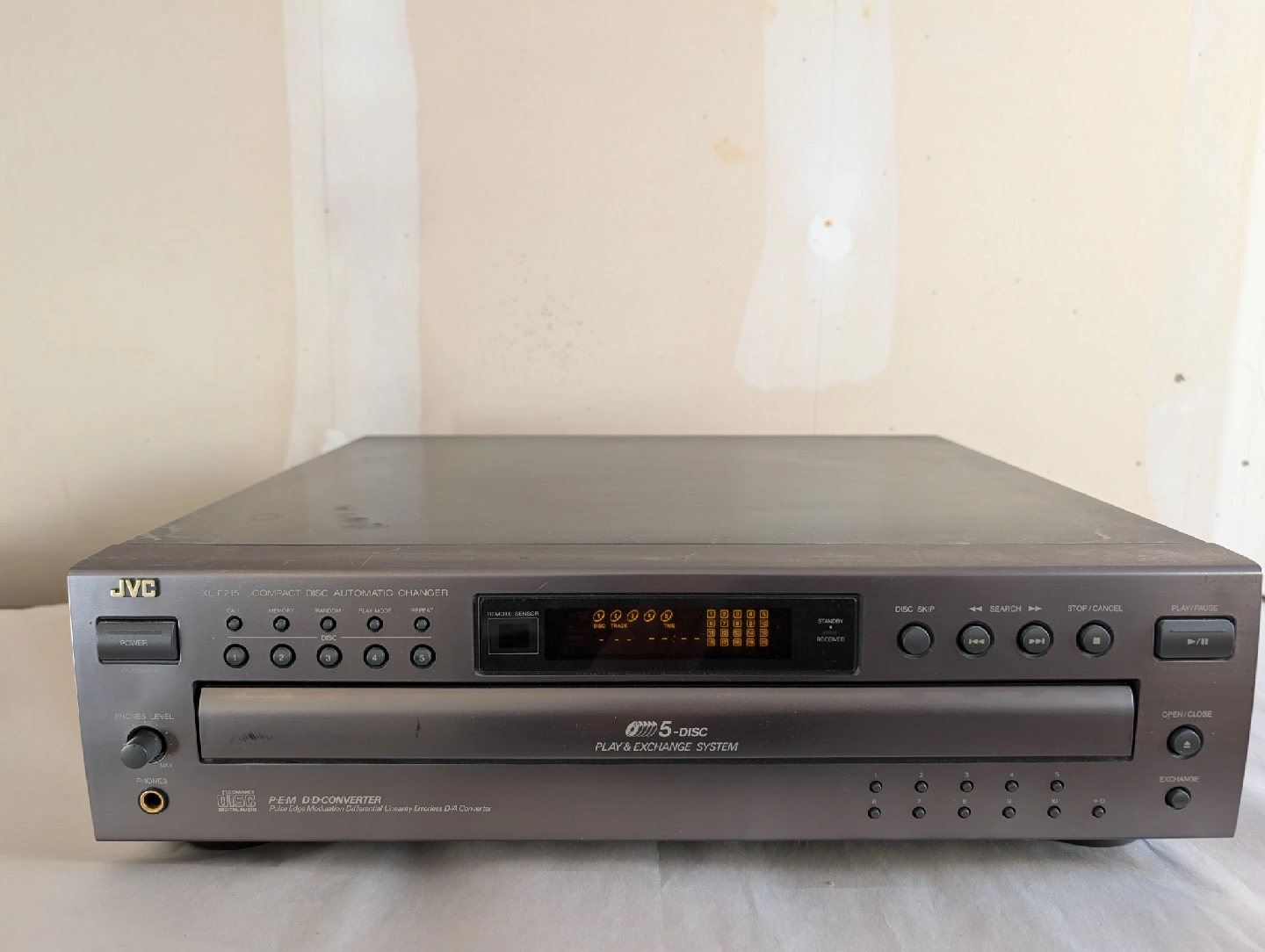 JVC XL-F215 Compact Disc Player. It's a 5-disc automatic changer. It powers on but does not open tray. Belt will need replacement.