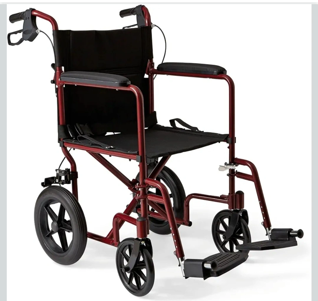 10Brand new Medline excel deluxe aluminum transport chair. • Lightweight, durable frame supports up to 300 lbs • Loop-lock hand brakes for safe transfers • Large 12" rear wheels for better performance on uneven outdoor surfaces. • Back folds down into a chair making it easy to store. • Fold compact for hassle-free storage • Removable footrests