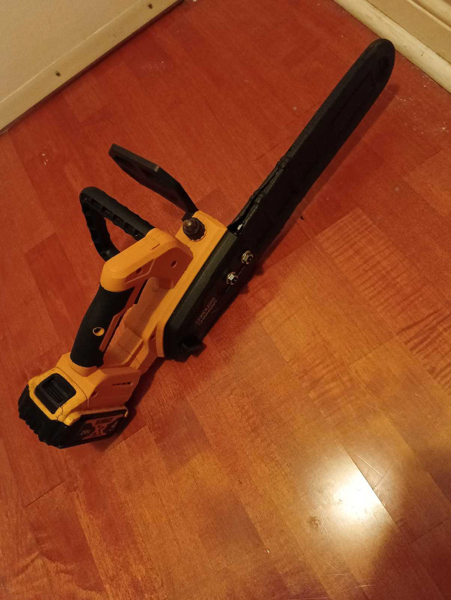 I'm selling a 20v 12-inch cordless chainsaw, perfect for light to medium-duty tasks around the yard. This chainsaw features a powerful motor and a long-lasting battery for efficient cutting performance. This item has been used.