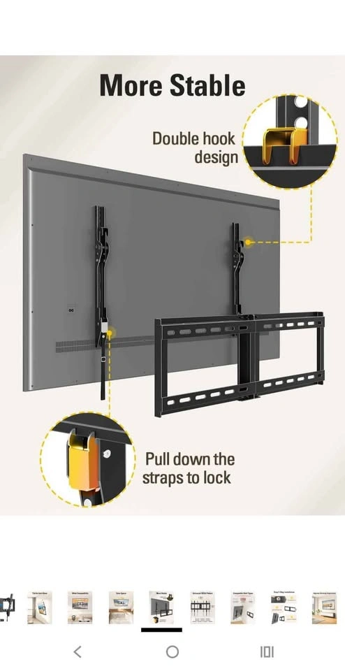 Low Profile TV mount places your TV close to wall 1.5" flush profile, saving space greatly with stylish appearance. Pulling straps locks and releases TV breezily.