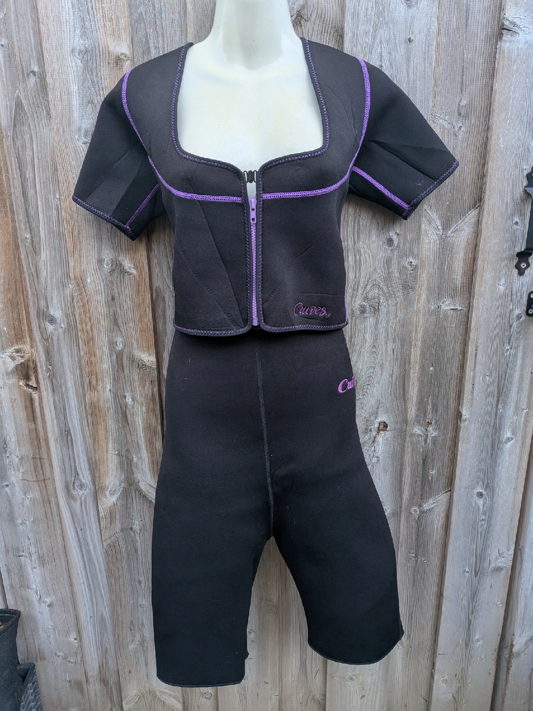168Selling a pair of Curves trimming shorts and top in black. They feature a purple zipper and logo. Great for workouts! Size Medium to Large Good used condition, no tears, holes, stains Cash only, No etransfers Location: Etobicoke. Rathburn Rd and Renforth dr. Etobicoke Olympium nearby