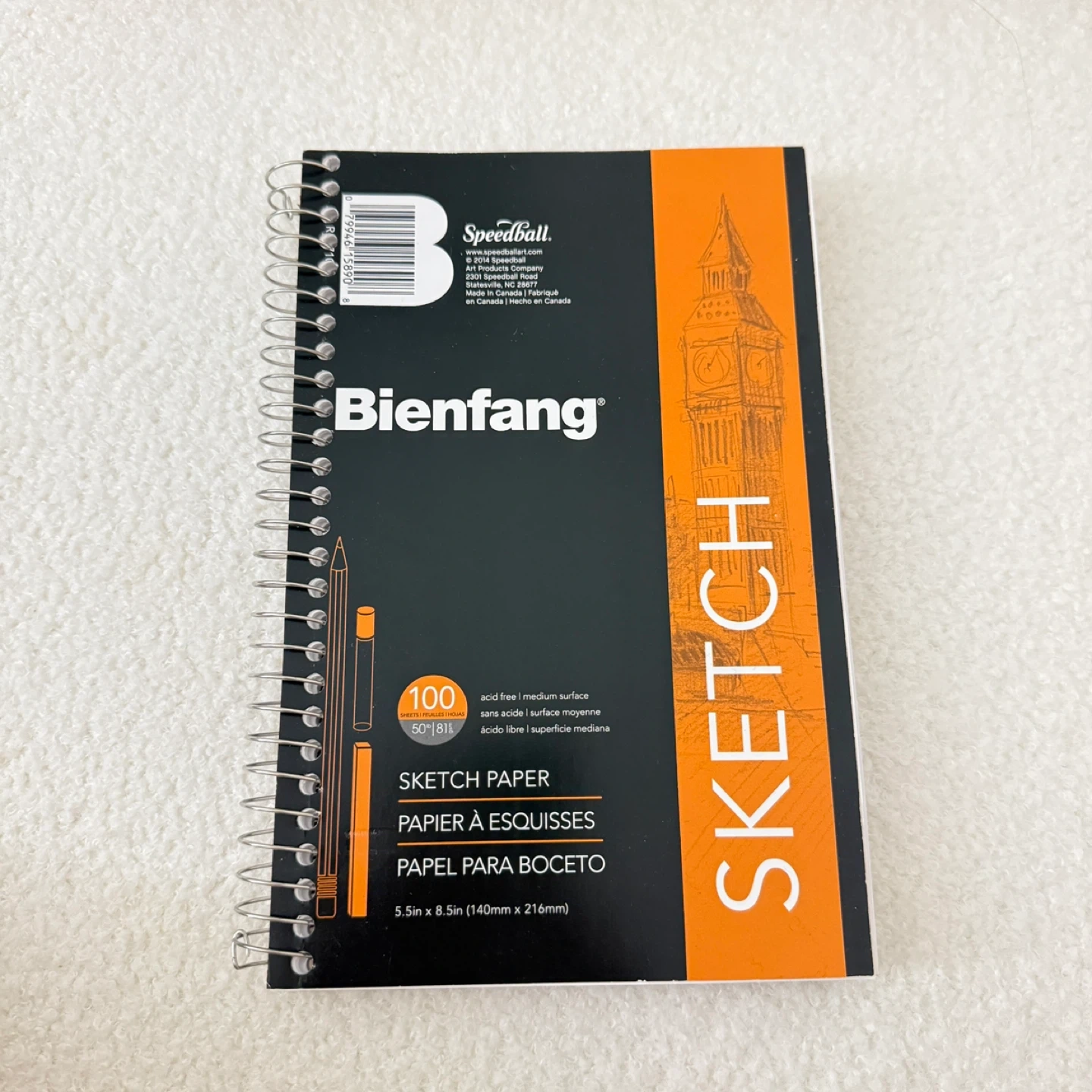 Bienfang Sketch Pad with acid-free, medium surface paper. It's 5.5 x 8.5 inches and has 100 sheets and it’s brand new