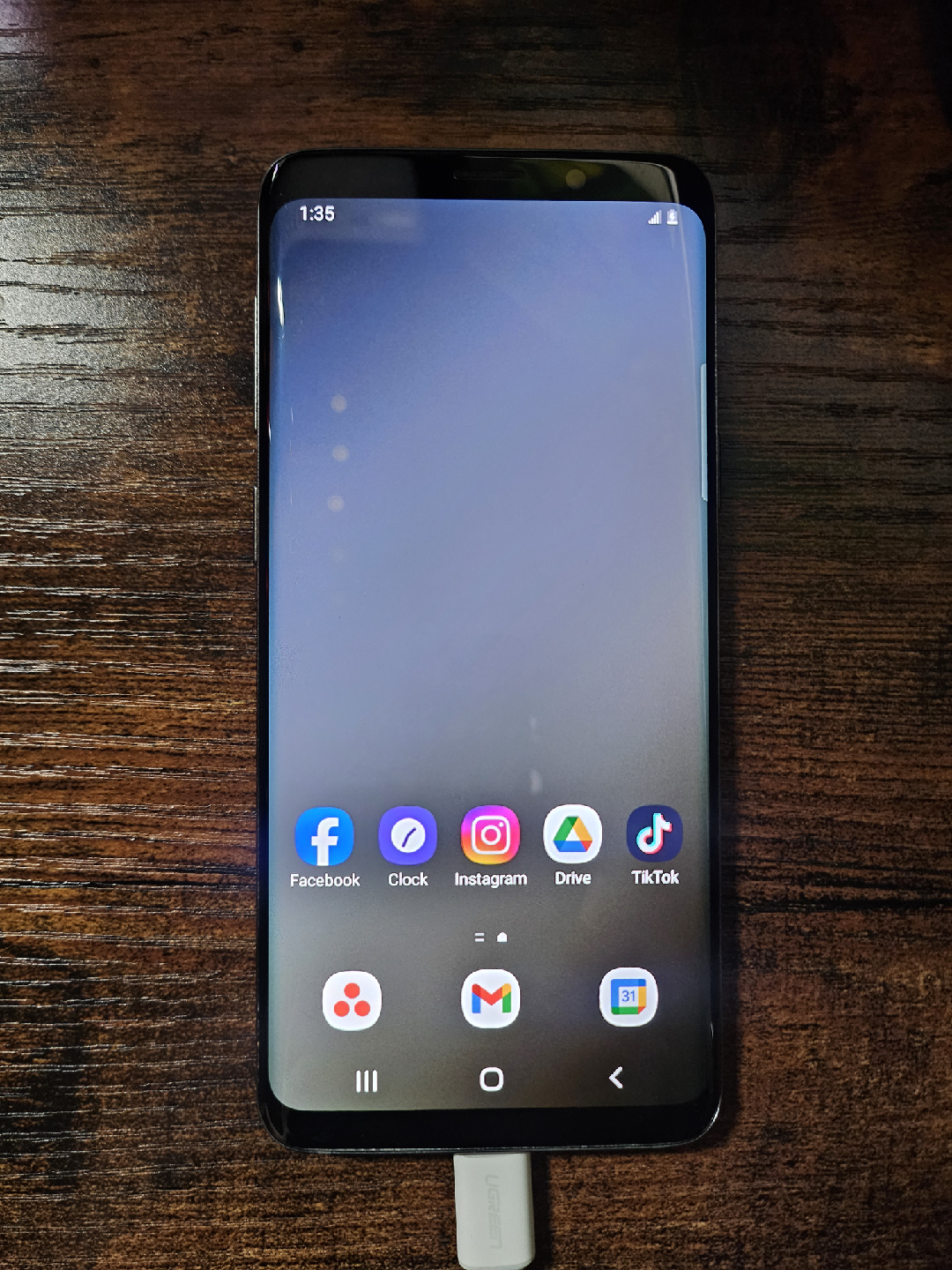 Good condition Samsung Galaxy S9 with a few hairline scratches, not visible when screen is on. No major cracks, no big scratches. Fully functional and great as a backup phone. Comes with cord and charging block.