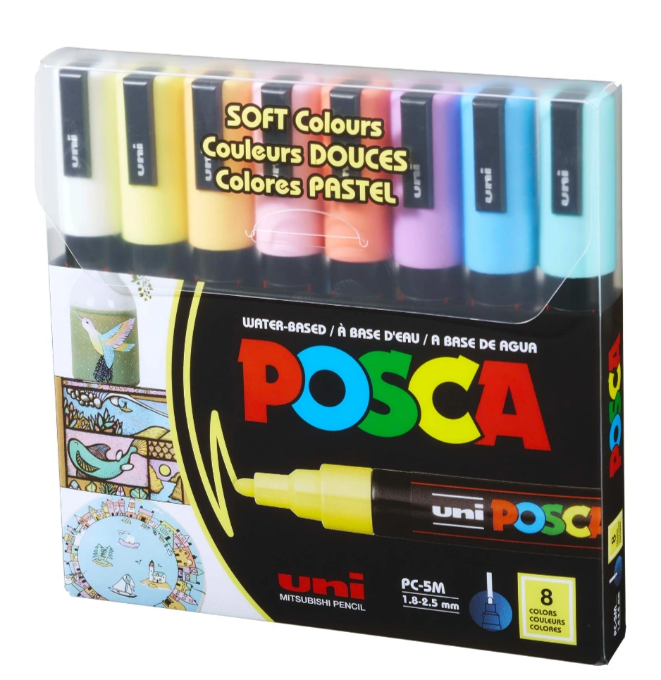 NIB Uni POSCA PC-5M Soft Colour Paint Markers - 8 Pack