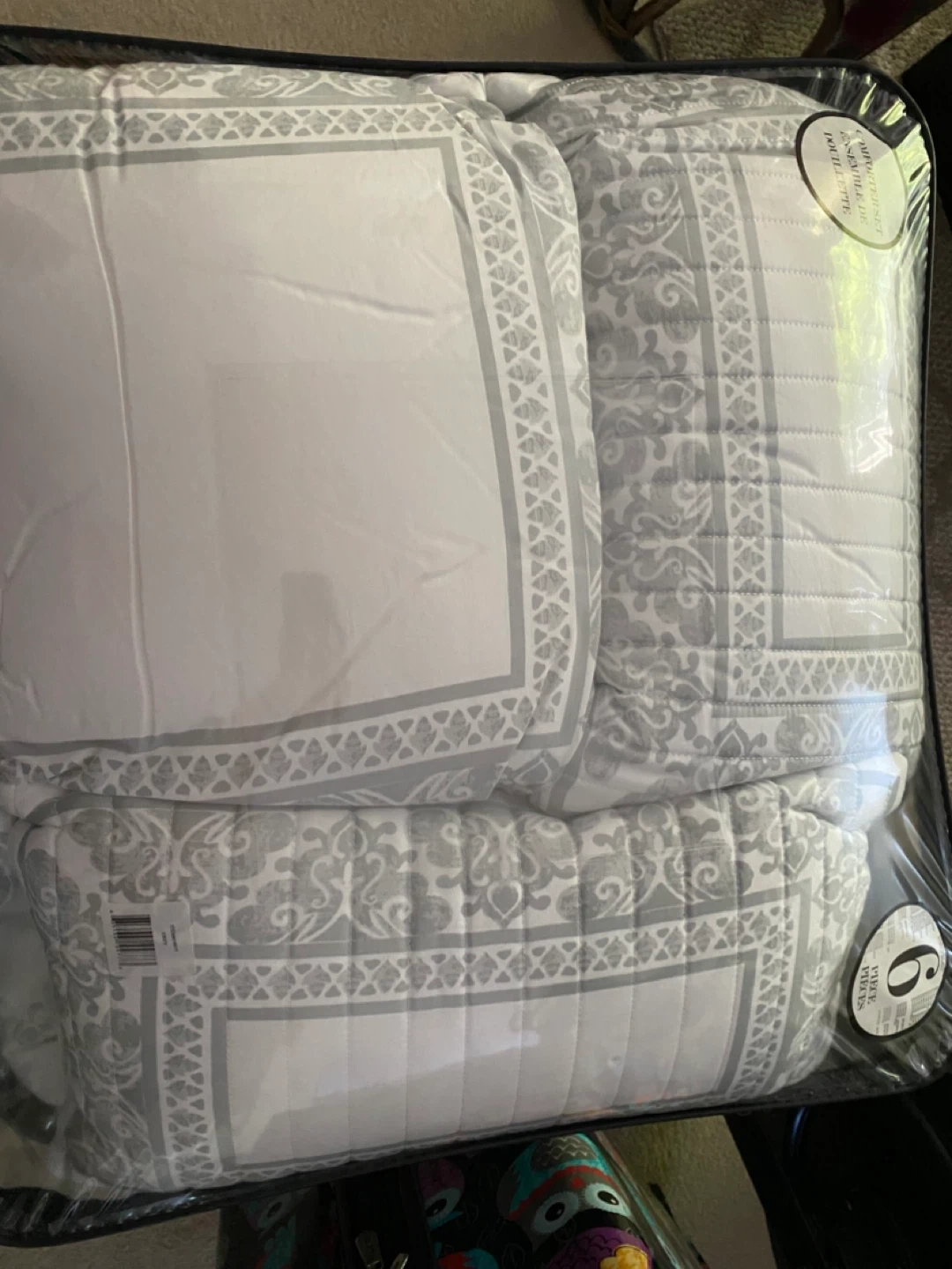 24Selling a brand new, still-in-packaging 6-piece comforter set in queen size! The set includes everything you need to dress up your bed with a touch of elegance and comfort. The comforter features a beautiful pattern that will add a stylish touch to any bedroom decor