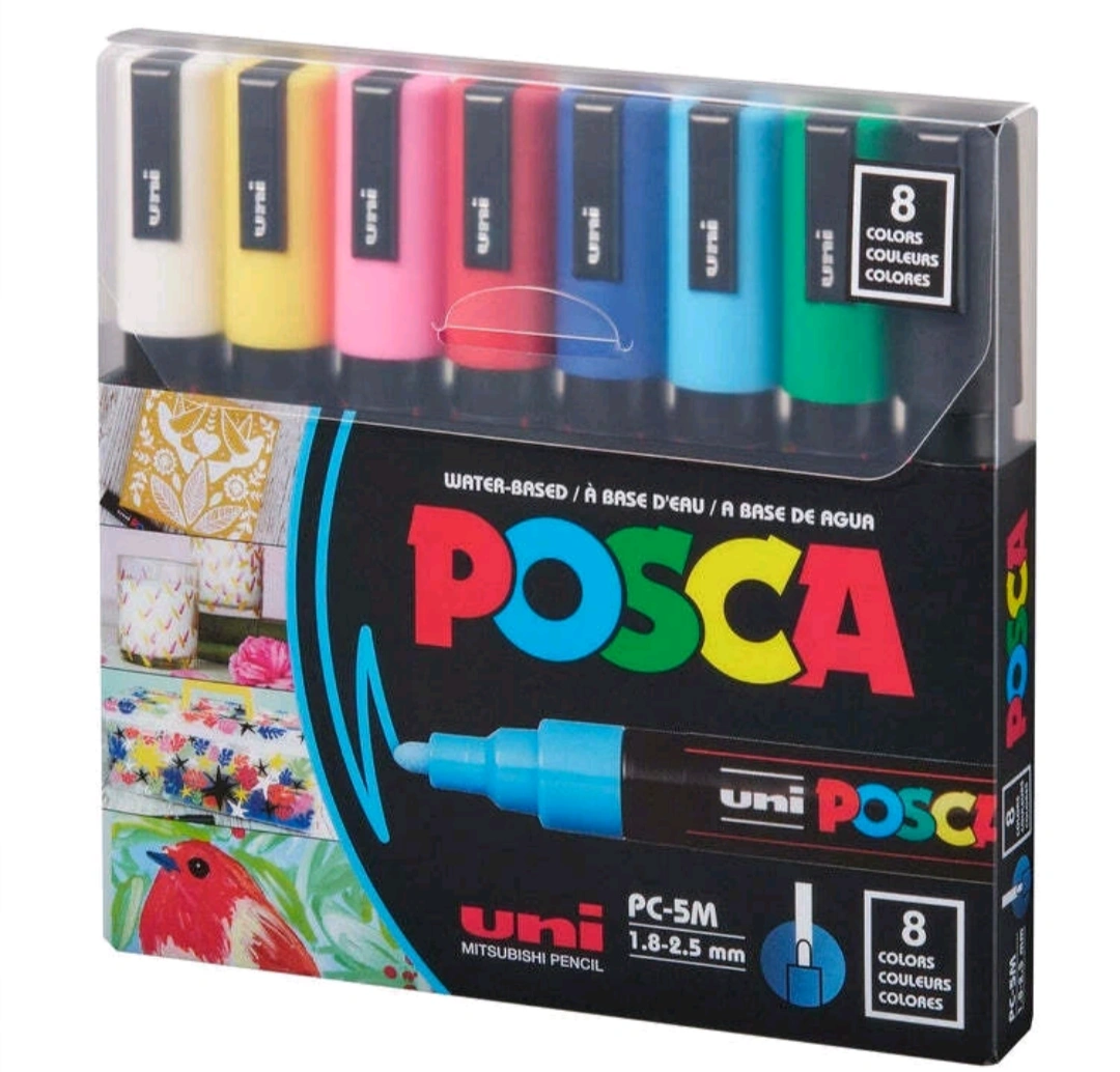 NIB Uni POSCA PC-5M Generic Colours Paint Marker Set - 8 Pack