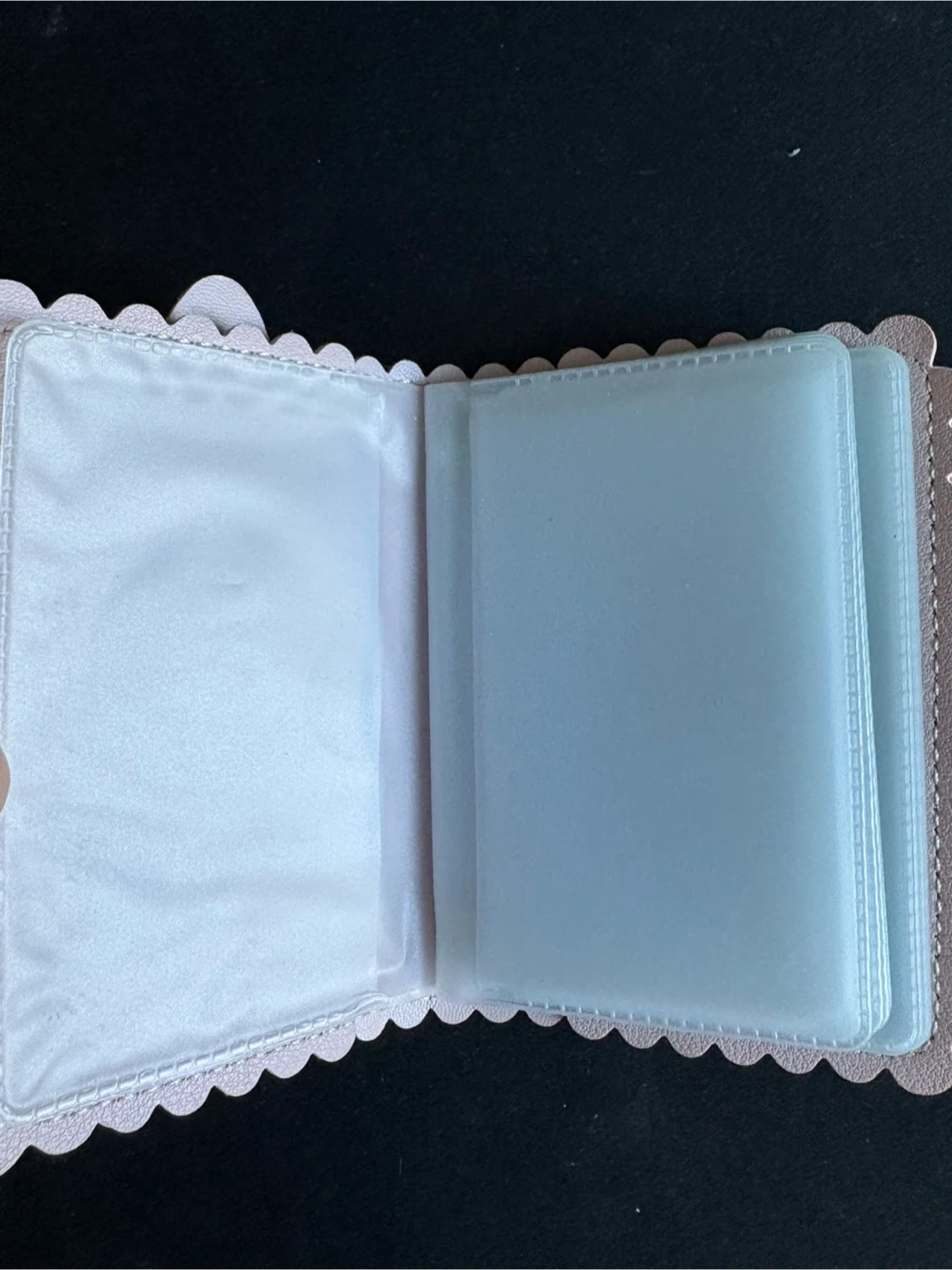 Here's a cute card holder! It's in great condition and ready for a new home. It features a scalloped edge and bunny ear details. Holds 24 cards