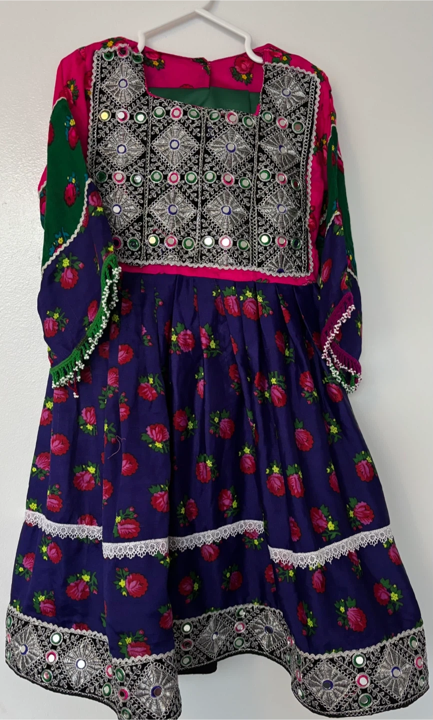Beautiful Afghan traditional dress with intricate embroidery and mirror work! The dress features vibrant colours and a lovely floral pattern. Perfect for cultural events or adding a unique touch to your wardrobe