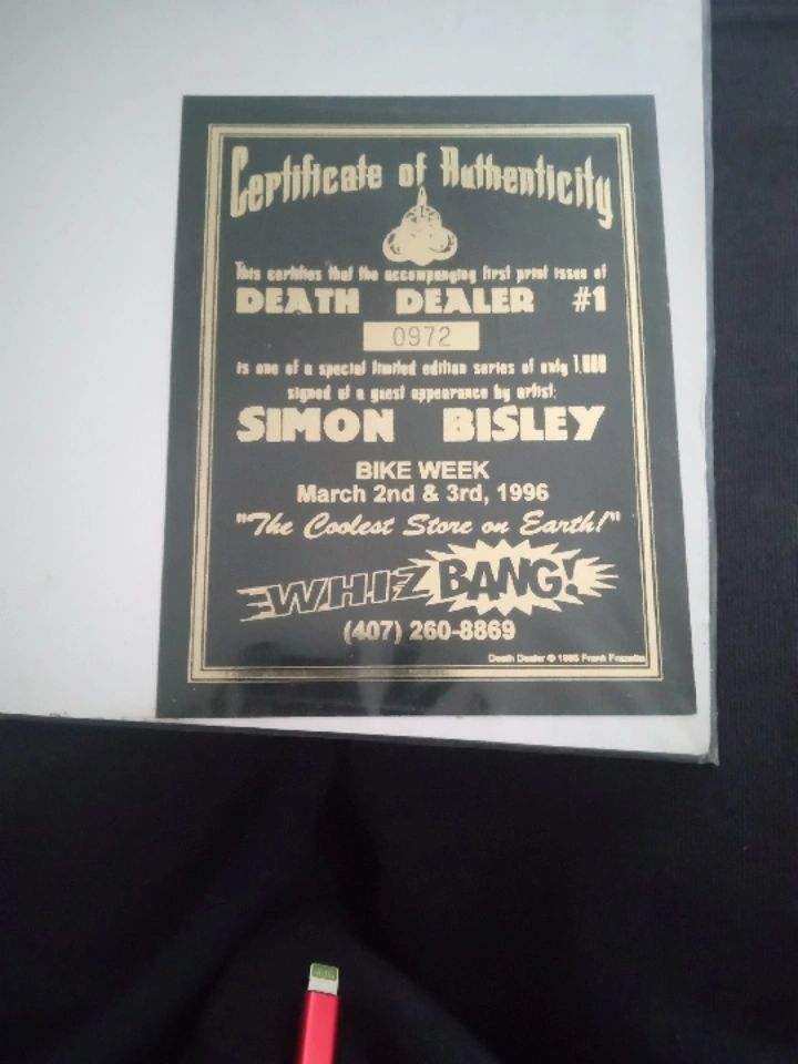 Selling a first print issue of Death Dealer #1 signed by artist Simon Bisley. This is one of a special limited series of only 1,000 signed at a guest appearance by artist.