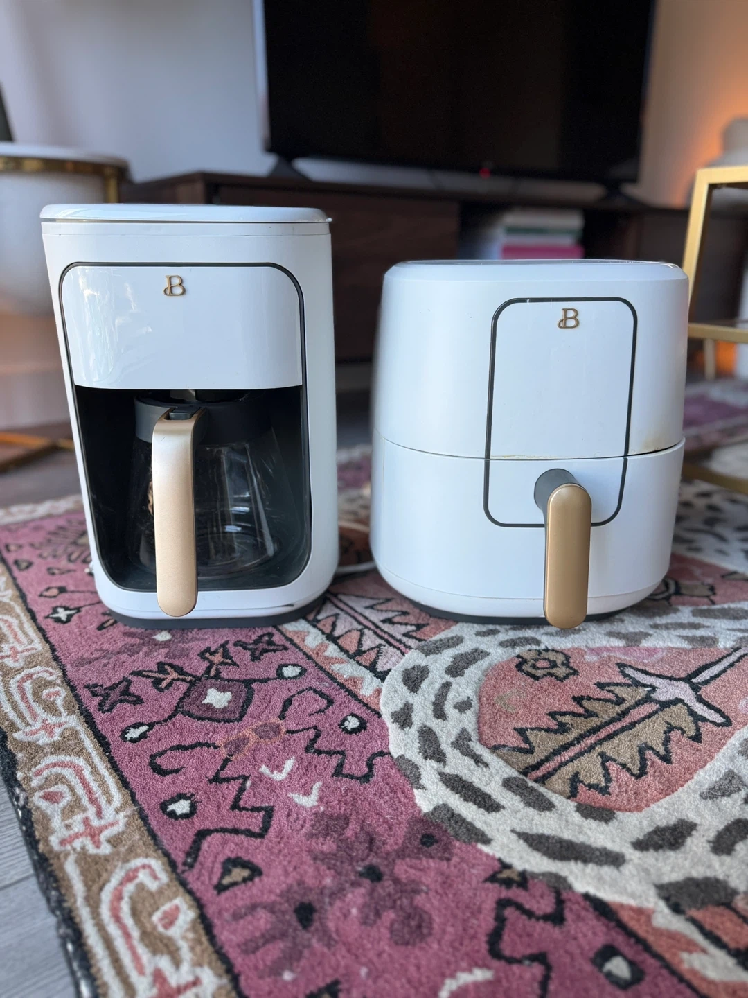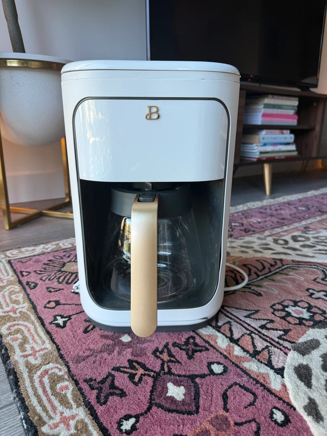 Selling a beautiful coffee maker in white with gold accents. Great condition and would look great in any kitchen! Perfect for someone looking to upgrade their appliances with a touch of elegance