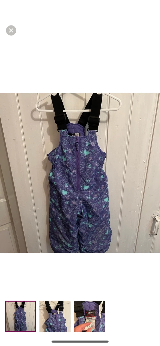 Gusti brand. Bib overall snowpants. Purple & blue floral. Size 2t. Brand new condition