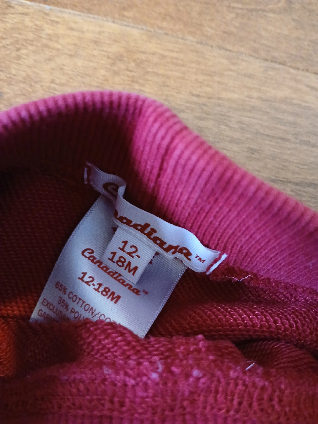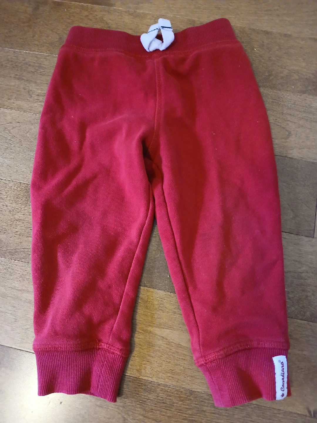 Cozy Canadiana baby pants, perfect for your little one! These pants are size 12-18 months and made of 65% cotton and 35% polyester.