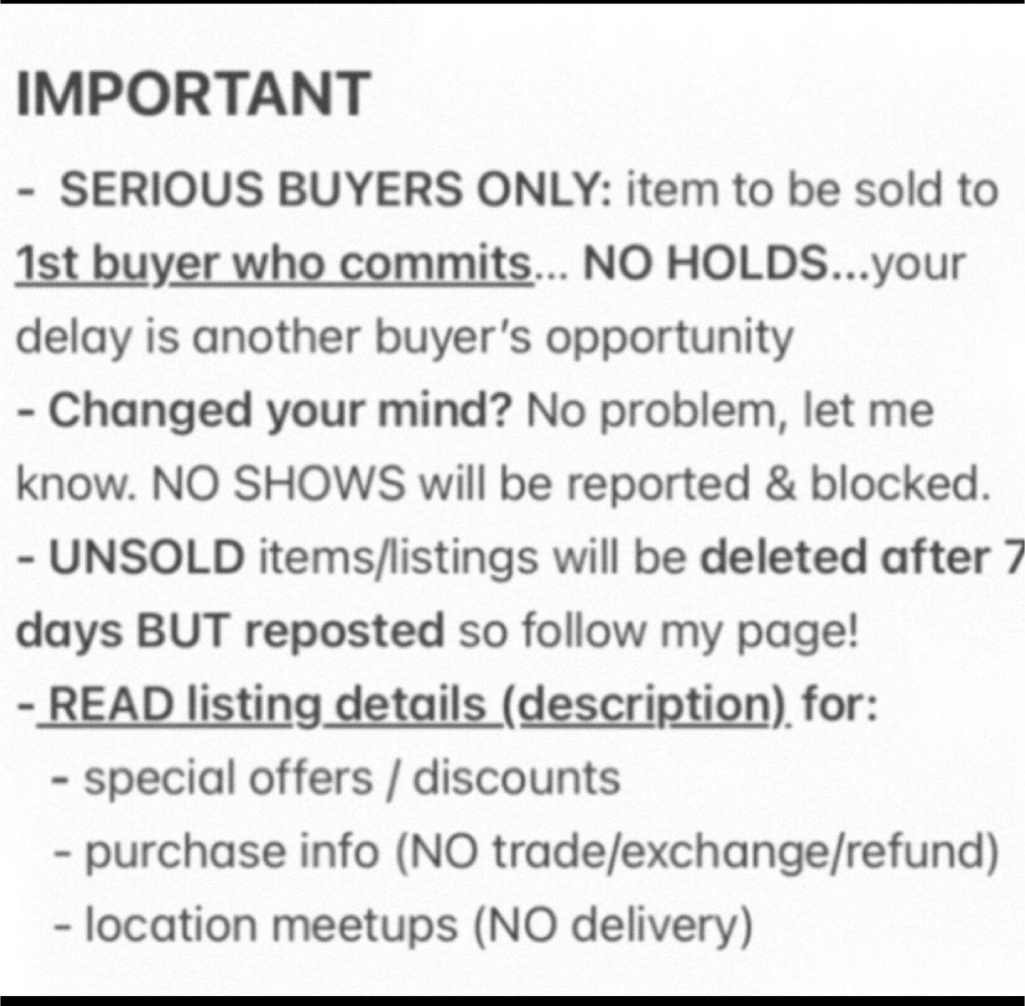 SERIOUS BUYERS ONLY / FINAL SALE / Cash Payment at pickup / NO HOLDS (Items will be sold on a FIRST-COME/PAYMENT-FIRST-SERVE basis!)