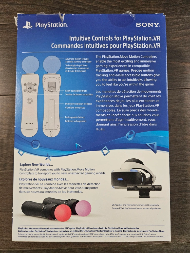 65Selling a PlayStation Move Motion Controller (2 Pack) in excellent condition! It comes with the original box and all included components. Enhance your PlayStation VR experience with these intuitive controllers