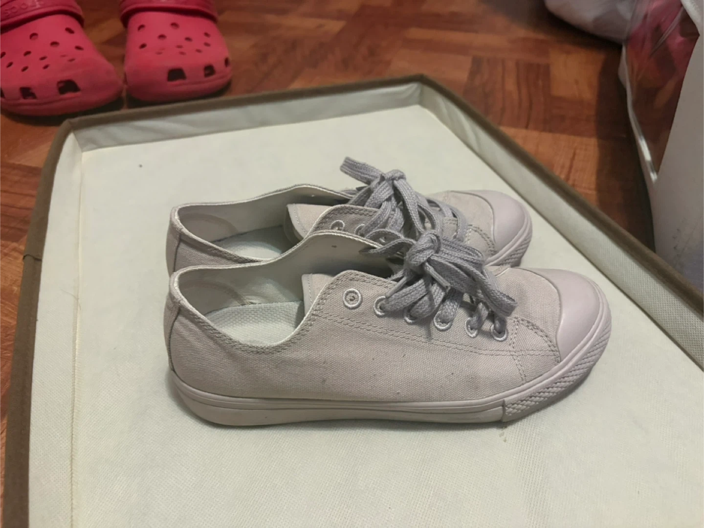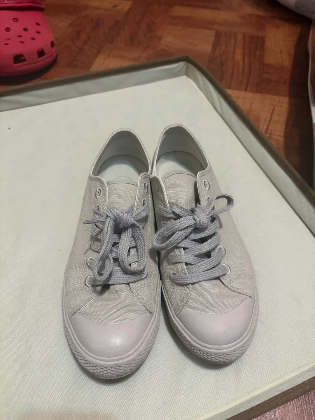 Selling a pair of women's beige canvas sneakers from MUJI! Price is around 40. I only used them once but couldn’t return them because it was a gift. Selling it due to size :(