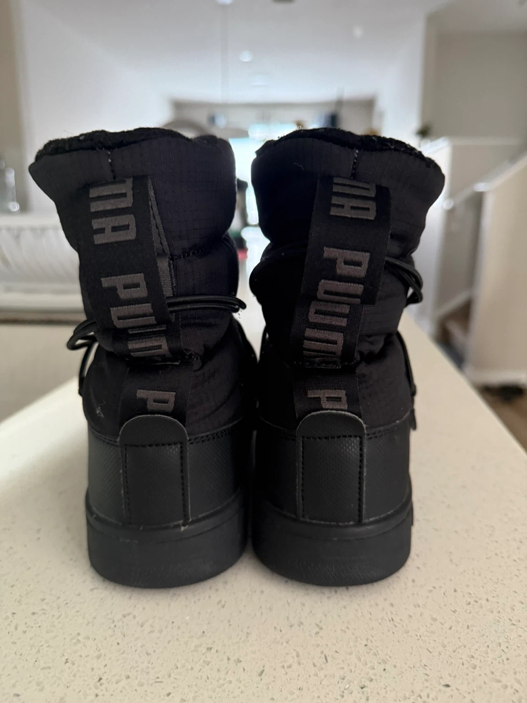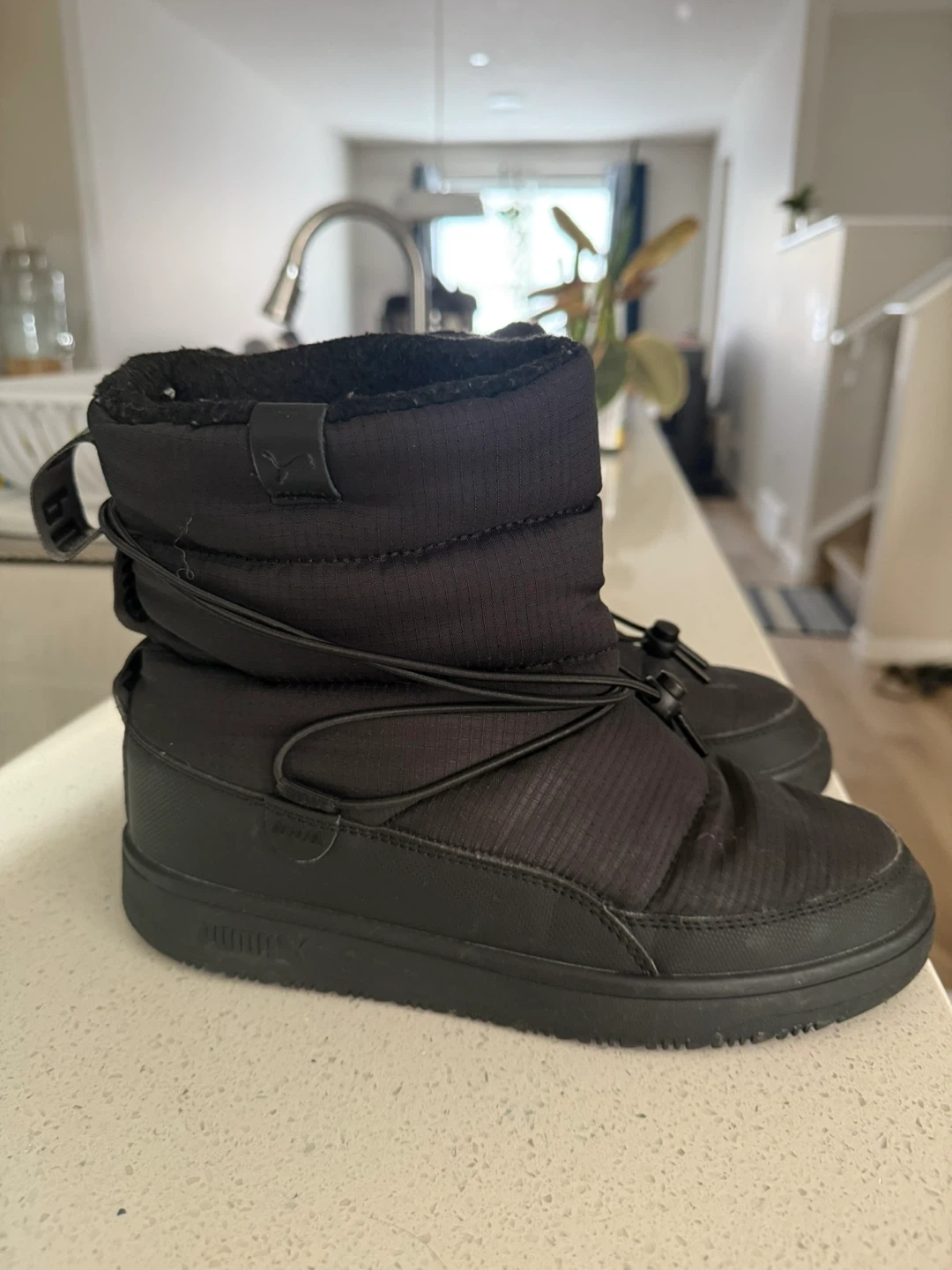Selling a pair of black Puma puffer-style winter boots. They're in great shape and ready to keep your feet warm and cozy this winter! These boots feature a stylish puffer design and are perfect for snowy days or just adding a bit of flair to your outfit
