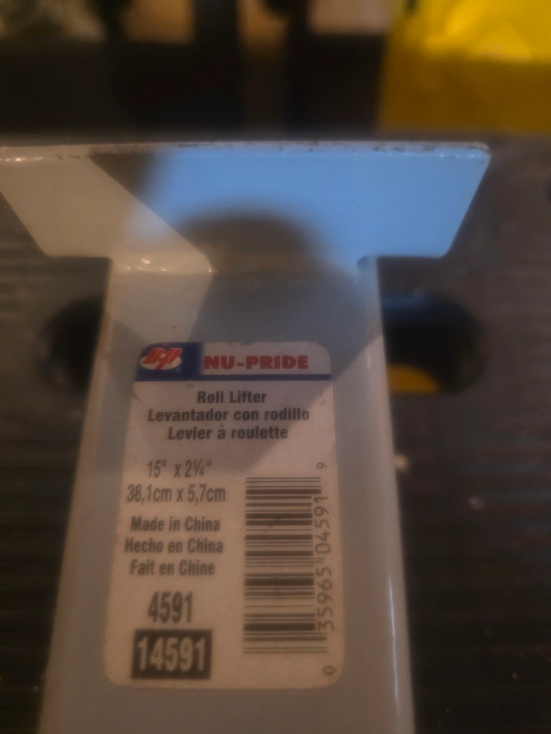 59Selling a NU-PRIDE Roll Lifter. It measures 15" x 2 1/4" (38.1cm x 5.7cm). Great for various lifting tasks! lifting up drywall up a inch ot two or anything up just a little to hold while you screw it in place. unit 1
