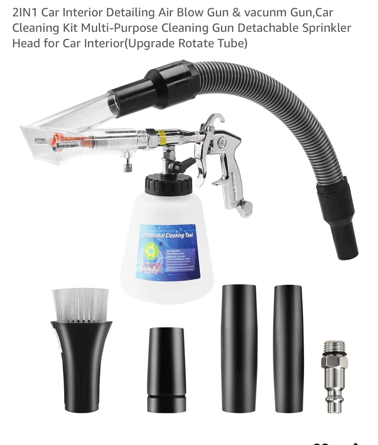 I'm selling a car interior detailing air blow gun. It's designed for deep cleaning your car. The air pulse car cleaning gun atomizes soap water and air and dispenses it under high pressure. It removes dirt and grime quickly and uses lower consumption of the cleaning product. Ergonomic design for easy and flexible cleaning, long-time use will not feel tired