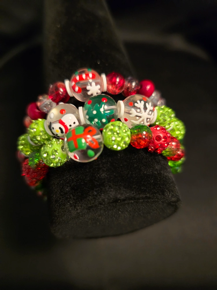 These are some super cute handmade Christmas themed beaded bracelets! They're perfect for adding a festive touch to your outfit or for gifting to friends and family during the holidays