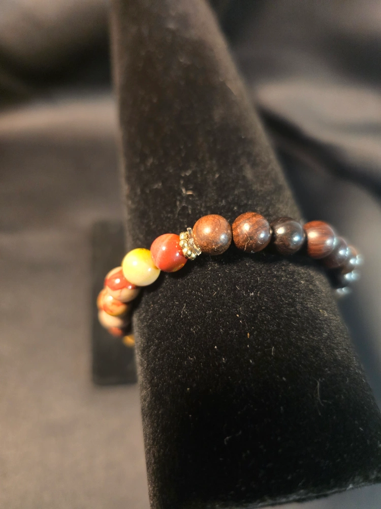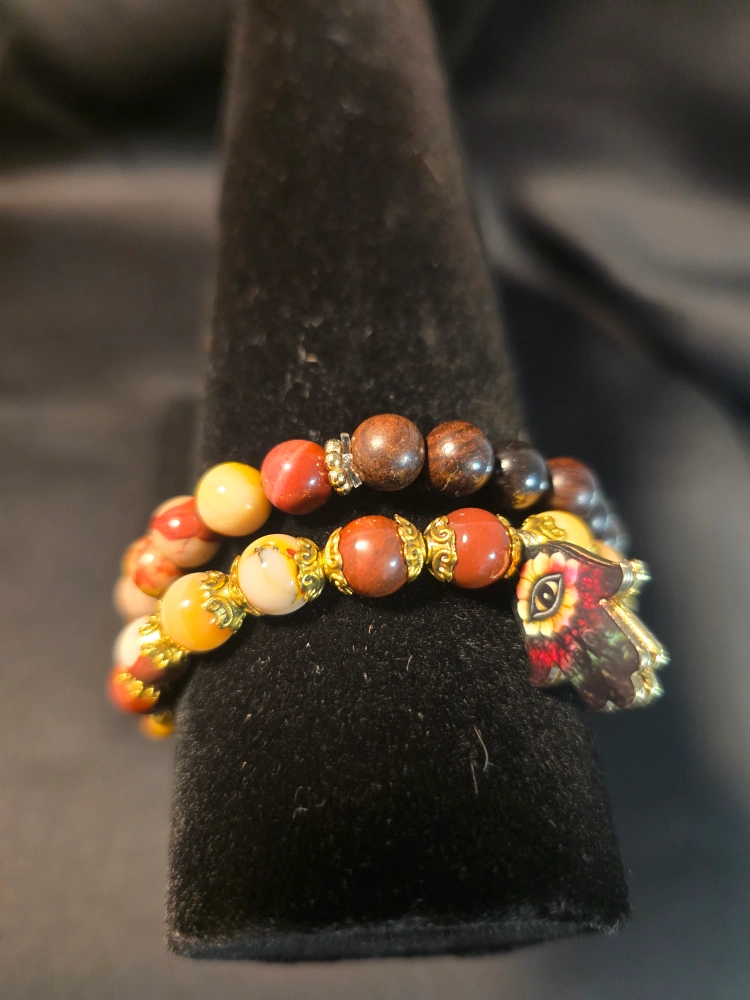 I'm selling a unique handmade beaded bracelet. It features colourful beads and a charming pendant. It's perfect for adding a touch of personality to your style!